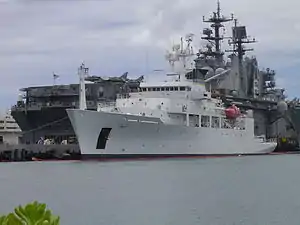 ![]() USNS Sumner (T-AGS-61) in Pearl Harbor, Hawaii July, 2003 with USS Bonhomme Richard in the background. | |