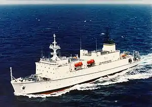 USNS Waters (T-AGS-45) is a United States Navy vessel tasked with supporting submarine navigation-system testing and providing ballistic missile flight test support services. In 2011, it was homeported in Port Canaveral, Florida.[1]