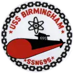USS Birmingham (SSN-695), a Los Angeles-class submarine, was the third ship of the United States Navy to be named for Birmingham, Alabama. The contract to build her was awarded to Newport News Shipbuilding and Dry Dock Company in Newport News, Virginia on 24 January 1972 and her keel was laid down on 26 April 1975. She was launched on 29 October 1977 sponsored by Mrs. Maryon Pittman Allen, wife of Senator James Allen, and commissioned on 16 December 1978, with Commander Paul L. Callahan in command.