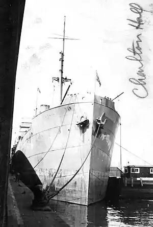 ![]() SS Charlton Hall ca. 1918, prior to her U.S. Navy service. | |