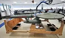 Desilu then ordered a larger filming model, which Datin contracted to Volmer Jensen and Production Model Shop in Burbank.[28] Datin supervised the model makers and did detail work on the model,[6] which was constructed from plaster, sheet metal, and wood.[30] When completed, it was 11 feet 3.5 inches (3.4 m) long, weighed 125 kilograms (276 lb), and cost $6,000.[6][30] The filming model was delivered too late to be used much for the initial pilot, "The Cage".[31] The 11-foot model was initially filmed by Howard Anderson.[28] When Roddenberry was approved to film the second pilot, "Where No Man Has Gone Before" (1966), various details of the 11-foot model were altered, and the starboard windows and running lights were internally illuminated.[31] When the series went into production, the model was altered yet again,[31] and it was regularly modified throughout its active filming.[32] Most of the fine details on the large model were not visible to television viewers.[33] Anderson's team struggled to film the model in a way that suggested it was moving at tremendous speeds, as the producers wanted to avoid the cliched look of a spacecraft drifting through space.[34]