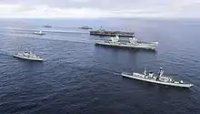 In July 2017, George H.W. Bush arrived in the UK to take part in Exercise Saxon Warrior, a joint exercise involving Carrier Strike Group 2 plus elements of the Royal Navy, German Navy, Royal Norwegian Navy and Swedish Navy. This included the staff of the Royal Navy's Carrier Strike Group embarking aboard Bush as part of their preparation for the entry into service of HMS Queen Elizabeth, the first of Britain's new aircraft carriers.[55]