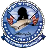 USS George Washington (CVN-73) is a United States Navy nuclear-powered aircraft carrier, the sixth carrier in the Nimitz class and the fourth US Navy ship named after George Washington, commander-in-chief of the Continental Army during the American Revolutionary War and the first president of the United States. The contract for George Washington was awarded to Newport News Shipbuilding on 27 December 1982. Her keel was laid on 25 August 1986, she was christened on 21 July 1990 by First Lady Barbara Bush, and the vessel was commissioned at Naval Station Norfolk on 4 July 1992.