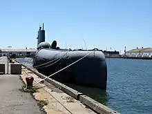 ![]() Regulus I missile aboard USS Growler at Pier 86 in New York, its museum ship home. | |