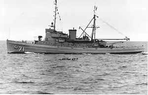 USS Hopi (AT-71) was a Navajo-class fleet tug constructed for the United States Navy during World War II. Her purpose was to aid ships, usually by towing, on the high seas or in combat or post-combat areas, plus "other duties as assigned." During World War II she was assigned to the Europe-Africa-Middle East Theater where she participated in four campaigns earning four battle stars.
