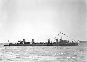 Hull spent the years before World War I on patrol and training exercises off the California coast. She decommissioned on 30 October 1912 and joined the Reserve Torpedo Division at Mare Island, with which she made occasional training cruises to California ports. When America entered the war in April 1917, Hull was being refitted at Mare Island. She sailed with other destroyers for the Panama Canal Zone on 25 April and for the next three months was engaged in defensive patrol off the western approaches to that vital waterway. She sailed to Norfolk on 26 July for escort and patrol duty along the East Coast. In the months that followed, Hull escorted ships to Bermuda and engaged in training maneuvers with other ships of the fleet as well. In June 1918, she broke up an attack by German submarine U-151 on a merchant ship, and often rescued sailors from sinking ships. She continued this vital ocean patrol duty until the end of the war.