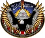 USS John Warner (SSN-785) is a nuclear powered Virginia-class attack submarine of the United States Navy. She is the first in the class to be named after a person; the first 11 Virginia-class subs were named after states.[5] John Warner was originally to be built by the Electric Boat division of General Dynamics in Groton, Connecticut, but the contract was later transferred to Huntington Ingalls Industries Newport News Shipbuilding. She is the second of the Block III subs, which have a revised bow and some technology from Ohio-class cruise missile submarines.[6] The vessel supports 40 weapons, special operations forces, unmanned undersea vehicles, and the Advanced SEAL Delivery System (ASDS).
