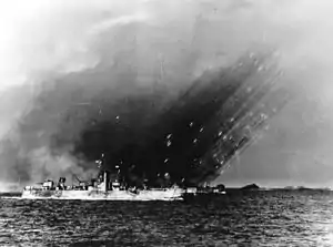 ![]() LSM(R)-196 (foreground), LSM(R)-190 (middle) and LSM(R)-199 (background) firing rockets off Tokishi Shima, March 1945 | |