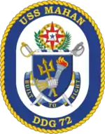 USS Mahan (DDG-72) is an Arleigh Burke-class destroyer currently in service with the United States Navy. This ship is the 22nd destroyer of her class. USS Mahan was the 12th ship of this class to be built at Bath Iron Works in Bath, Maine, and construction began on 17 August 1995. She was launched and christened on 29 June 1996. On 14 February 1998 she was commissioned in Tampa, Florida. Mahan is homeported in Norfolk, Virginia, and as of 2012 was attached to Destroyer Squadron 2. By 2016, the ship was part of Destroyer Squadron 22.[1]