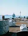 NATO and the UN carried out Operations: Provide Promise to provide humanitarian relief for people displaced by the fighting in former Yugoslavia (2 July 1992 – 9 January 1996); Deny Flight to monitor the air space over Bosnia-Herzegovina to prevent the warring parties from using their air strength (12 April 1993 – 21 December 1995); and Sharp Guard to enforce the arms embargo against the combatants (15 June 1993 – 2 October 1996). Mississippi served as Red Crown—coordinating air operations—in the Maverick Operating Area in the Adriatic Sea (2–18 April, 14–21 May, 11–21 June, 30 June – 9 July, 22–27 July, and 22 August–6 September 1995). In addition, the cruiser intercepted Polish vessel Dajti, and her boarding team boarded and inspected the Eastern European ship as a possible smuggler (7 April).[2]