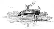 Montauk steamed into the North Fork of the Edisto River on April 1 in preparation for the attack on Charleston. At midafternoon on April 7, Admiral Du Pont's ironclads attacked Fort Sumter. The Union ships braved intense fire from Confederates coastal artillery, and kept their own guns operating effectively until withdrawing toward evening. Damage to the monitors prevented Du Pont from resuming the attack the next day with Montauk taking 20 hits.[1]