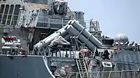 Side view of the Mk 141 and Mk 32 launchers of USS Paul Hamilton