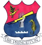 USS Princeton (CV/CVA/CVS-37, LPH-5) was one of 24 Essex-class aircraft carriers built during and shortly after World War II for the United States Navy. The ship was the fifth US Navy ship to bear the name, and was named for the Revolutionary War Battle of Princeton. Princeton was commissioned in November 1945, too late to serve in World War II, but saw extensive service in the Korean War, in which she earned eight battle stars, and the Vietnam War. She was reclassified in the early 1950s as an attack carrier (CVA), then as an Antisubmarine Aircraft Carrier (CVS), and finally as an amphibious assault ship (LPH), carrying helicopters and marines. One of her last missions was to serve as the prime recovery ship for the Apollo 10 space mission.
