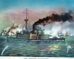 Puritan had a busy career in 1898 during the Spanish–American War. Assigned to the Cuban blockade in April, she joined New York and Cincinnati in shelling Matanzas on the 27th. After a stop at Key West in early May, she departed on the 20th to join the force building under Rear Admiral William T. Sampson that would eventually move against Santiago. Puritan linked up on the 22nd and Sampson moved his ships to Key Frances on the Nicholas Channel in order to execute his plan to contain the Spanish Fleet at Santiago. The success of Sampson's squadron at Santiago on 3 July resulted in almost the complete destruction of the Spanish Fleet. After Cuba, she sailed for Puerto Rico where she landed a party of US Marines and shelled the Spanish positions at the Battle of Fajardo.