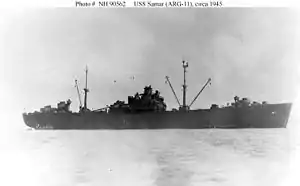 USS Samar (ARG-11) was a Luzon class internal combustion engine repair ship that saw service in the United States Navy during the final days of World War II, and in the post-war period. Named for the Samar Island in the Philippines, it was the second U.S. Naval vessel to bear the name.