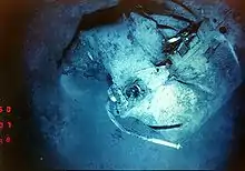 Photographs of the USS Scorpion wreck show the submarine's detached shaft and propeller, missing a rotor blade. Some experienced U.S. submariners attribute the loss of the submarine to flooding caused by the detached shaft.[28][29] Given that antisubmarine torpedoes were designed to seek the sound of the cavitation of the target submarine's propeller, this could be damage caused by such a weapon.[30]