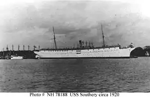 When the United States entered World War I in the spring of 1917, Southery was still at Portsmouth. On 27 April, the 47 prisoners on board were transferred to the new Portsmouth Naval Prison and she received half of the first draft of recruits from the Great Lakes Naval Training Station and, for five months, trained them intensively. She returned to duty as a prison ship on 25 September 1917 and was so employed until 7 November 1918, when she became receiving ship at the Portsmouth Navy Yard.