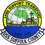 USS Suffolk County (LST-1173) was a De Soto County-class tank landing ship built for the United States Navy during the late 1950s. Named after counties in Massachusetts and New York, she was the only U.S. Naval vessel to bear the name.
