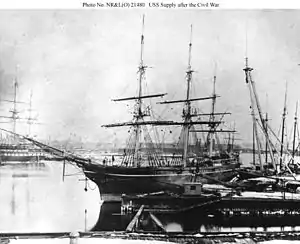 ![]() USS Supply, probably at the New York Navy Yard after the Civil War | |