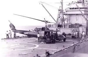 From 10 October to 25 November 1969, Terrell County supported Operation Seafloat. With an embarked helicopter detachment, she undertook refueling and rearming of helicopters, and provided ammunition and services for PCFs, SEAL teams, and troops. She also undertook small boat and PCF maintenance, as well as providing numerous personal services—laundry and small stores, to name but two. During this period, Terrell County established regular mail deliveries to off-shore units by helicopter, the first such services provided in the Cà Mau vicinity. On 15 October she fired a gunfire-support mission against VC vessels.