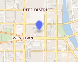 The WCD added the Wisconsin Athletic Walk of Fame alongside the U.S. Cellular Arena in 2001. At the end of this public promenade is a Wisconsin Historical Marker noting the location where Christopher Sholes invented the first practical typewriter, featuring the QWERTY keyboard layout.
