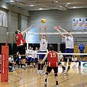 To prepare for the season, teams will typically play a series of exhibition games against conference and non-conference opponents.[16] These games are usually played in September and/or October before the regular season and in December and/or January during the holiday break.[17] In 2019, the Can Am Volleyball Holiday Showcase was created which featured eight teams from across North America, including those competing in the NCAA.[18] The 2019 tournament featured four U Sports teams and four NCAA teams, including the defending U Sports national champion Trinity Western Spartans and the NCAA national champion Long Beach State Beach.[19]