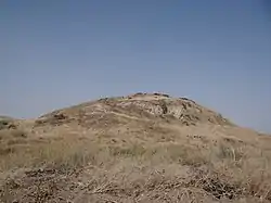 'Ubeidiya (Arabic: العبيدية, romanized: `Ubaydiyya; Hebrew: עובידיה), some 3 km south of the Sea of Galilee, in the Jordan Rift Valley, Israel, is an archaeological site of the early Pleistocene,[1] c. 1.5 million years ago, preserving traces of one of the earliest migrations of Homo erectus out of Africa, with (as of 2014) only the site of Dmanisi in Georgia being older.[2] The site yielded hand axes of the Acheulean type, but very few human remains.[3] The animal remains include a hippopotamus' femur bone, and an immensely large pair of horns belonging to a species of extinct bovid.