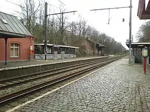 Uccle-Stalle railway station is a railway station in the municipality of Uccle in Brussels, Belgium. The station is operated by the National Railway Company of Belgium and located on line 124 between the stations of Forest-East and Uccle-Calevoet.[1] The station is named after the neighbourhood Stalle in Uccle.