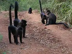 The Uganda mangabey (Lophocebus ugandae)[1] is a species of Old World monkey found only in Uganda and in the Minziro Forest Reserve, just over the border in Tanzania. This crested mangabey was previously thought to just be a population of the grey-cheeked mangabey (L. albigena). Colin Groves upgraded the Ugandan population to the new species L. ugandae on 16 February 2007. This species is significantly smaller than the grey-cheeked mangabey, with a shorter skull and smaller face. 2008 was the most recent year in which the International Union for Conservation of Nature assessed the conservation status of L. albigena, describing it as being of least concern, and the status of L. ugandae has not been assessed separately.[2]