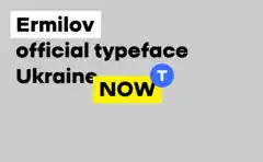 The main typeface of the brand is the Yermylov Bold typeface, which was created specifically for the Ukraine NOW brand. Its author was inspired by the works of Ukrainian constructivist artist Vasyl Yermylov.[1]