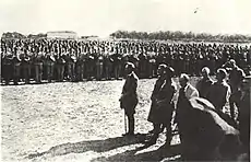 In December 1918, after the Directorate's coming to power, the army reached its peak at an estimated 100,000 recruits.[9] These armed forces proved to be neither battleworthy nor well-organized.[10] At the time most of Pavlo Skoropadskyi's Ukrainian State forces changed sides and joined the Directory.[10]