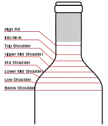 There are standard descriptions used by wine merchants and auction houses for the fill levels (ullage levels) of wine. The fill levels descriptions are different for Bordeaux and Burgundy wines due to the different shape of the bottles from those two regions.[2]