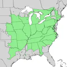 Ulmus rubra, the slippery elm, is a species of elm native to eastern North America, ranging from southeast North Dakota, east to Maine and southern Quebec, south to northernmost Florida, and west to eastern Texas, where it thrives in moist uplands, although it will also grow in dry, intermediate soils.[4] Other common names include red elm, gray elm, soft elm, moose elm, and Indian elm. The tree was first named as part of Ulmus americana in 1753,[5] but identified as a separate species, Ulmus rubra, in 1793 by Pennsylvania botanist Gotthilf Muhlenberg. The slightly later name U. fulva, published by French botanist André Michaux in 1803,[6] is still widely used in dietary-supplement and alternative-medicine information.
