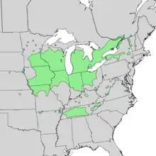 | Natural range of Ulmus thomasii | |