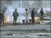 In a final show of support for the strike the Upper Newtownards Road in East Belfast was lined by farmers in their tractors with the convoy continuing all the way to the front entrance of the Stormont parliament, blocking the entrance.[5] Before long news about the collapse of the Executive spread across Northern Ireland, sparking uproarious scenes in Protestant areas.[5]