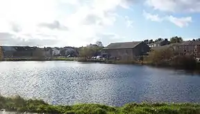 The opening of the Furness Railway in 1846 seriously damaged the profitability of the canal, which was eventually bought by the railway company. The rise of Barrow-in-Furness as a deep-water port also saw a decline in trade. After 1878, no ships were built in Ulverston. The canal was used commercially until the First World War and was officially abandoned at the end of the Second World War. It has since been maintained by Ulverston town council, who maintain a walkway on its eastern side. Its western side is still industrialised, with a large GlaxoSmithKline factory (built on the site of the former iron works and paper mills). Glaxo bought the canal from the town council in 1974 and used it as an emergency water reserve.[7] In 2009, GlaxoSmithKline reviewed their operations at Ulverston and later sold the canal to Ulverston Canal Company, a company set up to manage the asset. This is a subsidiary of NPL Estates Ltd, which specialises in land management. A Trust has also been set up by GlaxoSmithKline, to ensure that funds are available for the canal's management, maintenance, and preservation.[10]