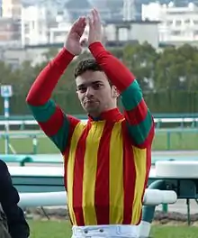 Umberto Rispoli (born 31 August 1988 in San Severino Marche, Italy) is a horse racing jockey. He commenced his apprenticeship in 2005 and graduated to the senior ranks in 2010. He was a member of the Hong Kong Jockey Club until December 2019 when he moved his tack to Southern California.[1][2] As of June 2021, Rispoli has accrued over $11 million in purses and won 189 races.[3]