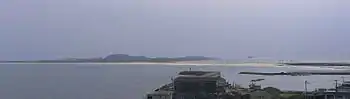 Umi no Nakamichi (海の中道) is a tombolo in Higashi-ku, Fukuoka, Fukuoka Prefecture, Japan. It connects Kyushu Island and Shikanoshima Island. It is 8km in length and up to 2.5 km in width. Its northern coast borders Genkai Sea and its southern coast Hakata Bay. There are many resorts. Most of the area is covered with sand hills but there is a terrace on the Northern side of the tombolo, where sands are believed to have been deposited during the Pleistocene.