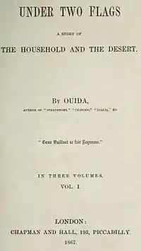 Under Two Flags (1867) was a best-selling novel by Ouida.[1] The most famous of her books, it tells the story of an English aristocrat, apparently in disgrace, who disappears and joins a French battalion in Algeria, loosely based on the Foreign Legion.