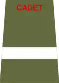 The use of the term in CCF contingents is inconsistent, with some having JUOs[3][4] and sometimes also SUOs,[5][6] and others simply having under officers.[7] The ACF has the single appointment of cadet under officer (CUO).[8] The rank badge is a white bar on the rank slide.[9][10]