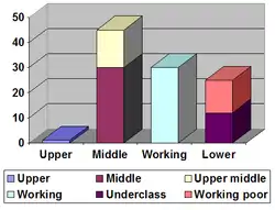 As evident with Mead and Auletta's framing, some definitions of the underclass significantly diverge from the initial notion of an economic group beneath the working class. A few writings on the underclass distinguish between various types of underclass, such as the social underclass, the impoverished underclass, the reproductive underclass, the educational underclass, the violent underclass, and the criminal underclass, with some expected horizontal mobility between these groups.[11] Even more divergent from the initial notion of an underclass are the recent journalistic accounts of a so-called "genetic underclass", referring to a genetic inheritance of a predisposition to addiction and other personality traits traditionally associated with behavioral definitions of the underclass.[12][13][14][15] However, such distinctions between criminal, social, impoverished, and other specified underclass terms still refer to the same general group—those beneath the working class. And, despite recent journalistic accounts of a "genetic underclass", the underclass concept is primarily, and has traditionally been, a social science term.