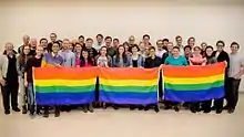 USGA (Understanding Sexuality, Gender, and Allyship, previously Understanding Same-Gender Attraction)[5] is an organization for LGBT Brigham Young University students and their allies.[6][7][8][9][3] It began meeting on BYU campus in 2010 to discuss issues relating to homosexuality and The Church of Jesus Christ of Latter-day Saints (LDS Church).[10][11] However, by December 2012, USGA began meeting off campus at the Provo City Library[12][13] and is still banned from meeting on campus as of 2018.[14][15] BYU campus currently offers no official LGBT-specific resources as of 2016.[16] The group maintains political neutrality and upholds BYU's Honor Code. It also asks all participants to be respectful of BYU and the LDS Church.[17] The group received national attention when it released its 2012 "It Gets Better" video.[11][18][19] The group also released a suicide prevention message in 2013.[20] A sister organization USGA Rexburg serves the LGBT Brigham Young University–Idaho student community in Rexburg, Idaho.[21][22][23]