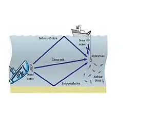 Underwater acoustic communication is a technique of sending and receiving messages below water.[1] There are several ways of employing such communication but the most common is by using hydrophones. Underwater communication is difficult due to factors such as multi-path propagation, time variations of the channel, small available bandwidth and strong signal attenuation, especially over long ranges. Compared to terrestrial communication, underwater communication has low data rates because it uses acoustic waves instead of electromagnetic waves.