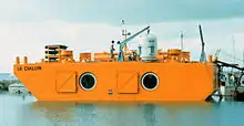 The first underwater habitat built by Jacques Rougerie was launched and immersed on 4 August 1977.[42] The unique feature of this semi-mobile habitat-laboratory is that it can be moored at any depth between 9 and 60 metres, which gives it the capability of phased integration in the marine environment. This habitat therefore has a limited impact on the marine ecosystem and is easy to position. Galathée was experienced by Jacques Rougerie himself.[43][44]
