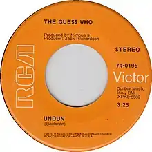 "Undun" is a popular song by Canadian rock band The Guess Who. It spent two weeks at #21 on the Canadian Singles Chart in November–December 1969[3] and reached #15 on the U.S. adult contemporary chart and #22 on the Billboard Hot 100.[4]