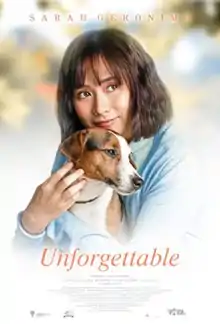 Unforgettable is a 2019 Filipino drama film starring Sarah Geronimo, directed by Perci Intalan and Jun Robles Lana. The film was released in cinemas on October 23, 2019 under Viva Films.[1][2] It also stars the celebrity dog Milo, Gina Pareño, Ara Mina, Meg Imperial and Kim Molina. Sarah Geronimo won Best Actress Award at the 4th Guild of Educators, Mentors, and Students (GEMS) Hiyas ng Sining Awards.[3]