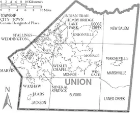 Union County is a county located in the U.S. state of North Carolina. As of the 2020 census, the population was 238,267.[1] Its county seat is Monroe.[2] Union County is included in the Charlotte-Concord-Gastonia, NC-SC Metropolitan Statistical Area.