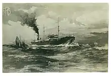 Built in 1912 by the Fore River Shipyard for the Union Sulphur Co. She was a 3,365 gross ton bulk carrier. She was named after Frasch's daughter Frieda Frasch. She served as the USS Frieda during World War I, from October 1918 to January 1919. She was later sold to a Chinese concern and renamed Peh Shan, and later Norse Carrier. On December 8, 1941, during the Second Sino-Japanese War, she was captured by Japan at Shanghai and renamed Sana Maru. She was operated by Japan during World War II until October 20, 1943, when she was sunk off the coast of French Indochina by the American Gato-class submarine USS Kingfish.[36][37]