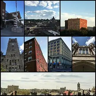 ![]() From top left: Uniontown Area High School, Morgantown Street, Fayette Building, Fayette County Courthouse, White Swan Apartments, First Niagara Building, Central School, skyline of Uniontown. | |