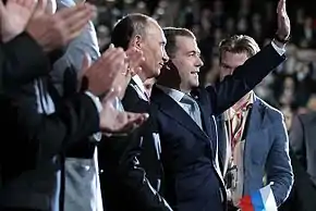 At the party's XIII Congress, held on 26 May 2012, Medvedev was elected chairman of United Russia.[48] United Russia decided not use portraits of Medvedev and Putin during the fall election campaign.[49]